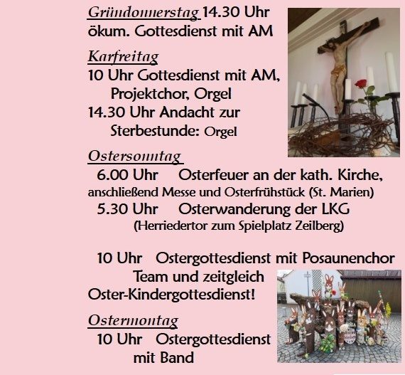 Herzliche Einladungen zu den Gottesdiensten in den Kar- und Ostertagen in Meinhardswinden